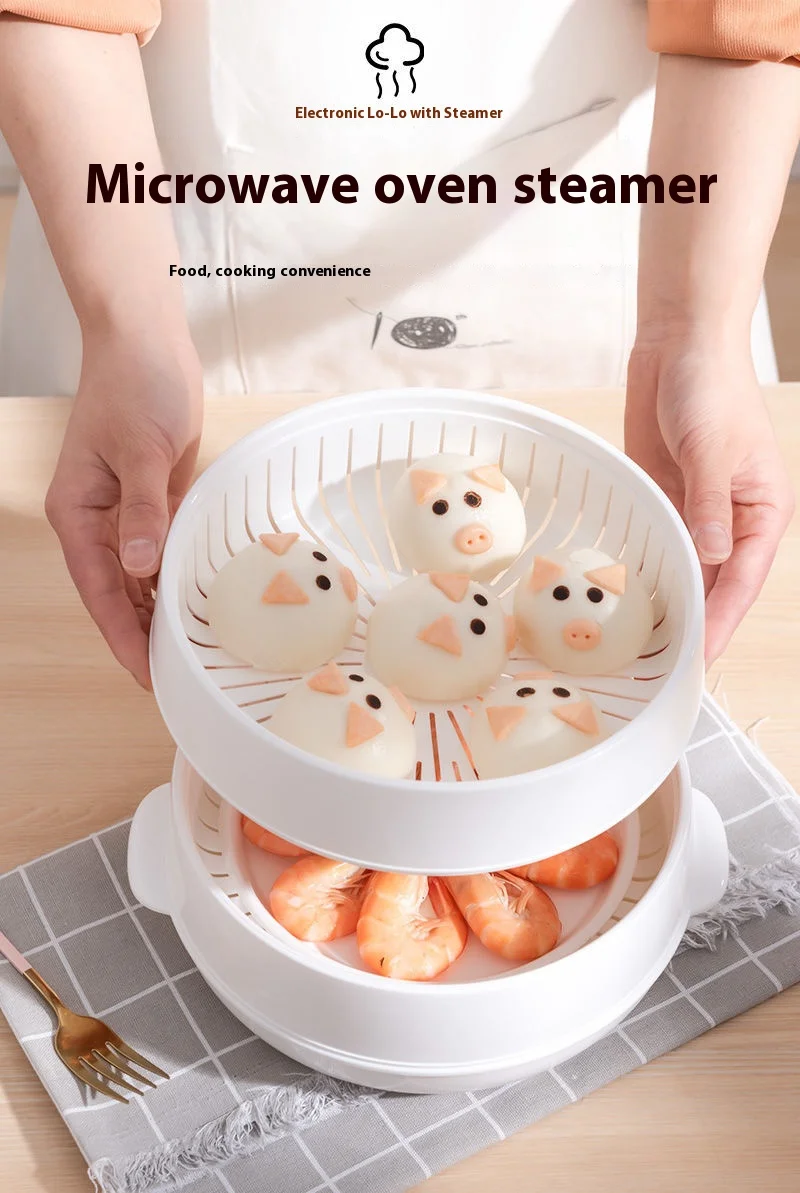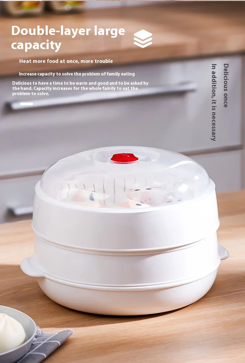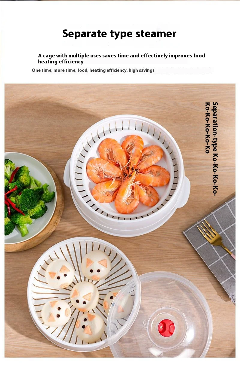 Home Multichamber Steamed Bun Steamer Thickened Food Contact Grade Material Steam Box for Microwave Oven