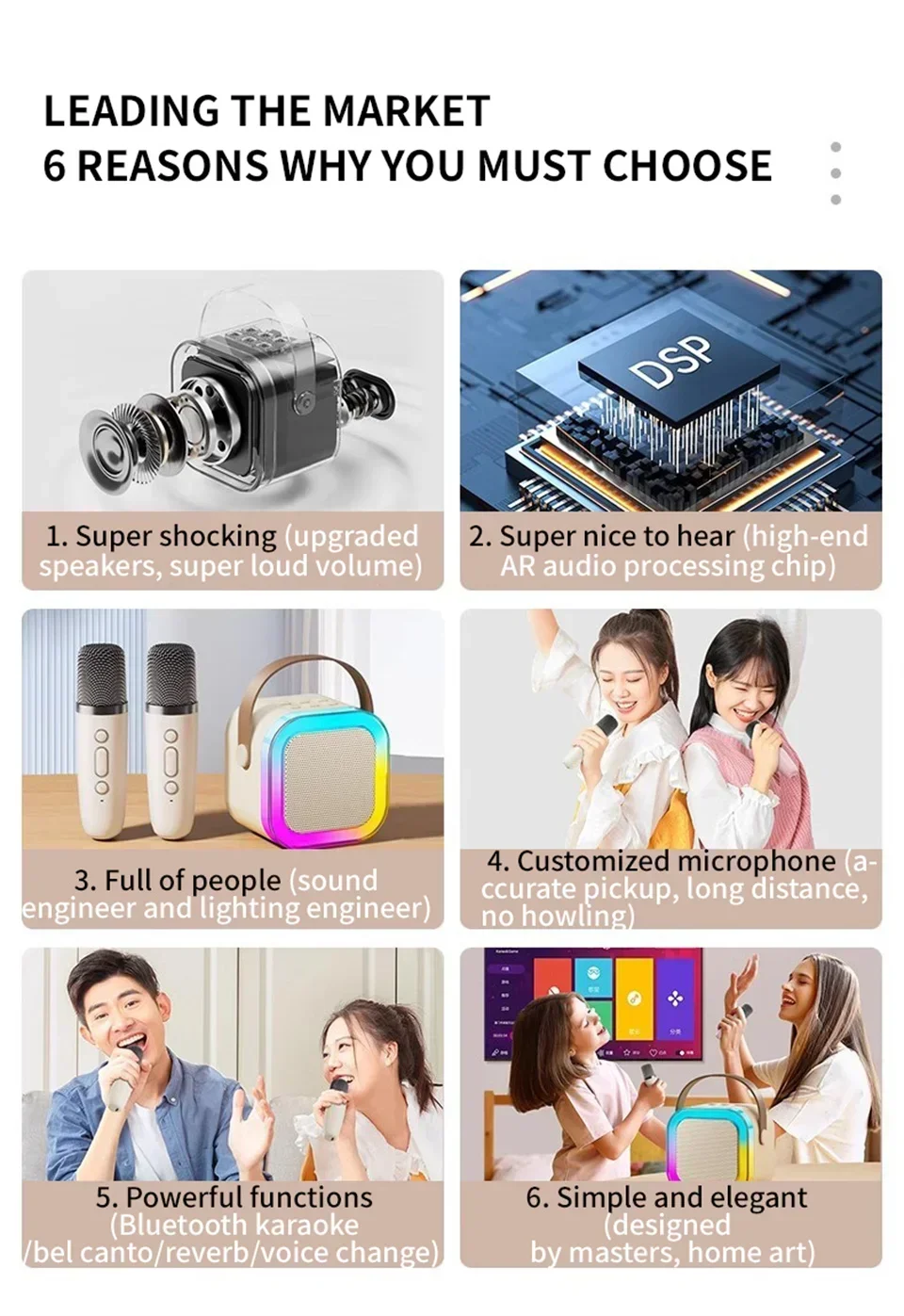 K12 KTV Karaoke Microphone Speaker Wireless Bluetooth Lecture Meeting Voice Box Mini Colorful Lights Audio Long Standby